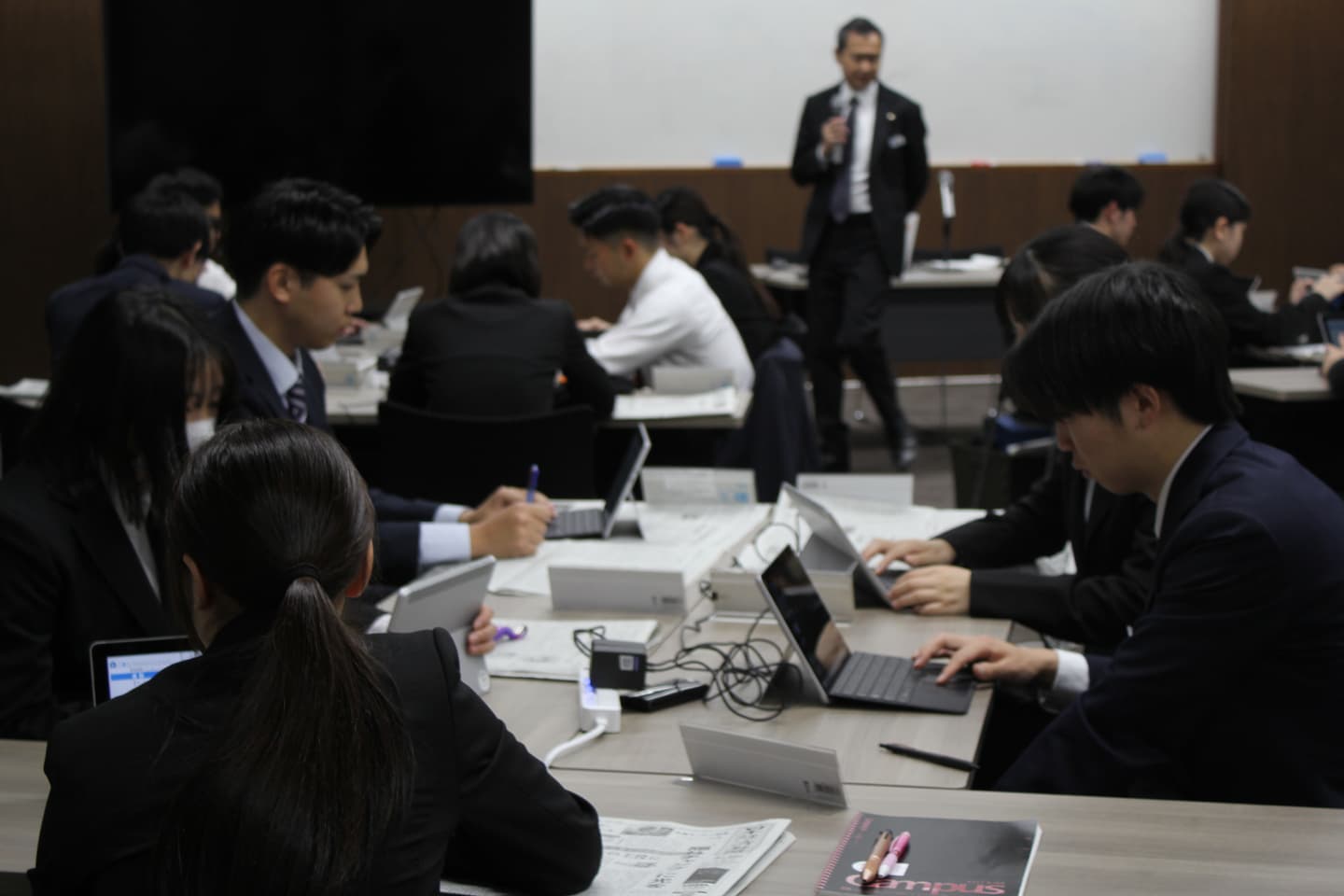 4月の新入行員研修では、社会人としての考え方やビジネスマナー、