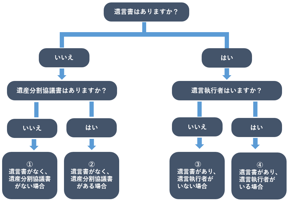 ①遺言書がなく、遺産分割協議書がない場合(共同相続の場合)
