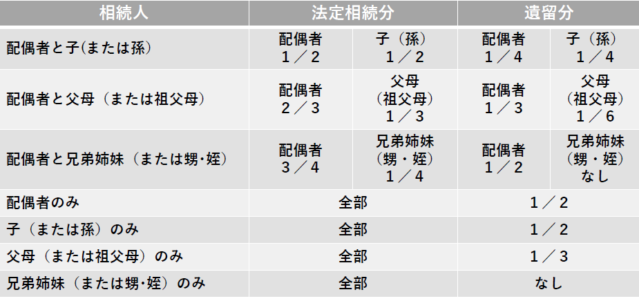 遺留分を主張することができる相続人は、配偶者、直系卑属(子・孫)、直系尊属(祖父母)に限られ、遺言者の兄弟姉妹は除かれ