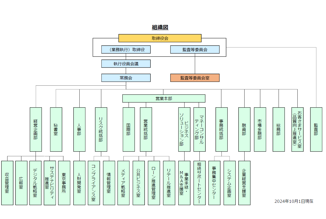 本行は組織と機構による合理的運営の厳正を期し、権限と責任の明確化をもって業務遂行の根幹とする。