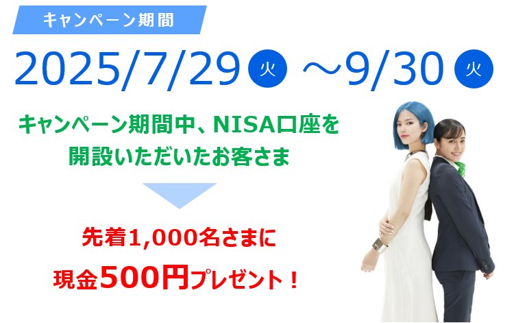 | 特典内容 | 対象取引をお申し込みのお客さま先着1,000名に、500円をプレゼント |